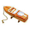 Wow, this is a gorgeous mahogany boat! Do they still make pleasure boats out of mahogany, or is this just a dream from the past? A tiny anchor is at the end of the chain, and a life preserver is painted inside! Approximate size is 3¾ x 1¼ x 1½ inches.